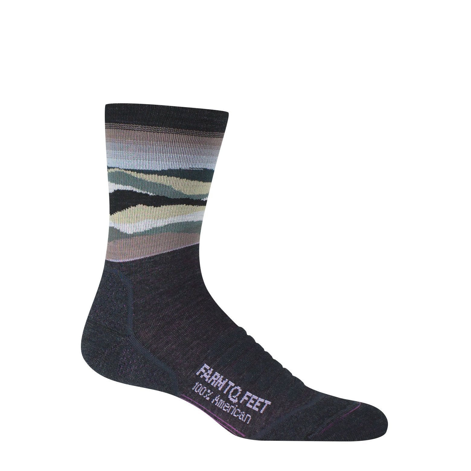Max Patch, located just west of Asheville, NC, is one of the most popular spots on the Appalachian Trail for its 360 degree views. Part of the Farm to Feet Appalachian Trail collection, the Max Patch 3-quarter crew sock features an infinite loop of mountain tops around its ankle, much like the view from the mountain’s grassy summit. The foot of the sock is based off our popular Damascus with targeted cushioning and reinforcement zones for superior comfort and durability, but in a lower height and great ankle-high views.