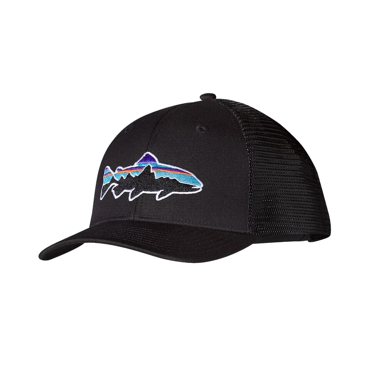 Have the southern Andes on your mind? Our Fitz Roy Trout Trucker Hat combines what we love best about the raw Patagonia landscape: wild trout and towering vistas. The hat mid-crown front and bill are made from 100% organic cotton canvas; polyester mesh in the back circulates airflow. The structured 6-panel design and pliable, precurved brim provide comfort that goes the distance. Adjustable snaps in back customize the fit.
