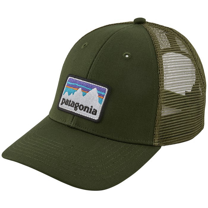The Shop Sticker Patch LoPro Trucker Hat is inspired by vintage stickers once used by purveyors of gear for the great outdoors. The hat features a traditional, structured front ball-cap fit in a trucker setup: organic cotton bill and crown; polyester mesh back for increased ventilation. The six-panel design with front stitching, lower front-crown profile and pliable, precurved bill provide all-day comfort. Snaps in back make sure you're well-adjusted.