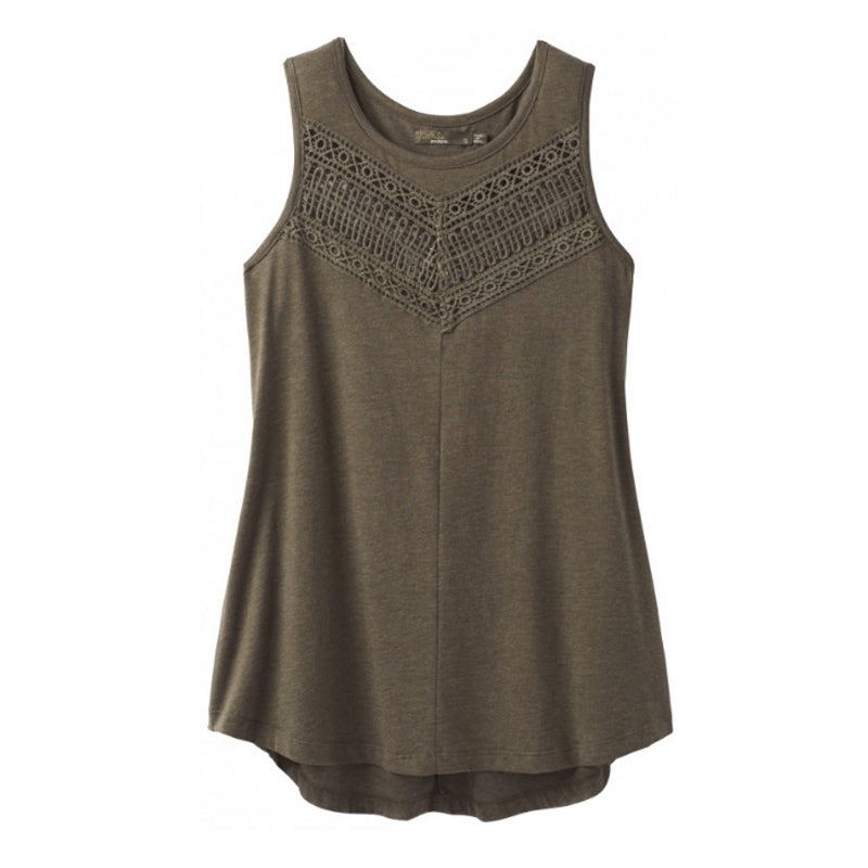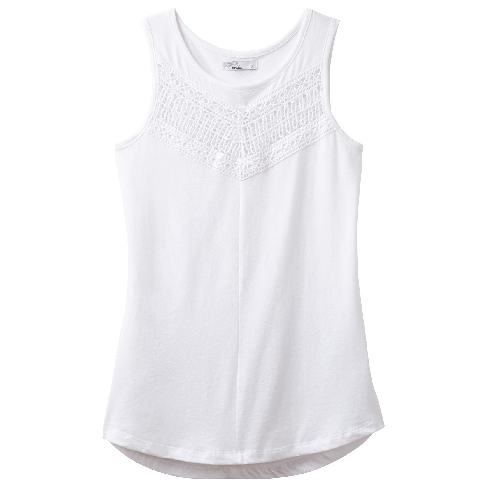 The Petra Top blends organic cotton and recycled poly to create a comfy jersey fabric with lace insets in a tank silhouette with shirttail hem.